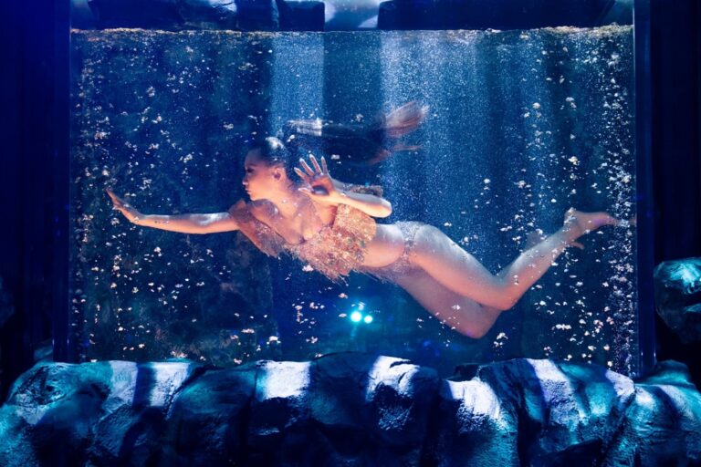 E é justamente quando tudo parece já ter ido longe demais que Kumi encontra novas formas de surpreender. Em uma de suas apresentações mais marcantes, ela surge dentro de um tanque de água. Submersa. O silêncio dura apenas o suficiente para criar expectativa – até que ela emerge e começa a cantar, como se aquilo fosse apenas mais um detalhe.