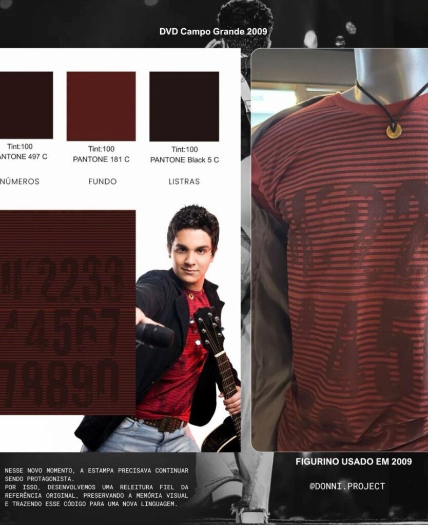 Os figurinos são outra peça-chave, remetendo à looks que o artista utilizou em eras passadas da carreira. A roupa que abriu o show era um elegante sobretudo preto em cima de um sofisticado colete vermelho, que preservou a estampa de códigos que exibia a camiseta básica de mesma cor que ele usava em 2009 na gravação do DVD “Ao Vivo – Em Campo Grande”. Uma nostalgia que vai além do som e passa pela memória visual.